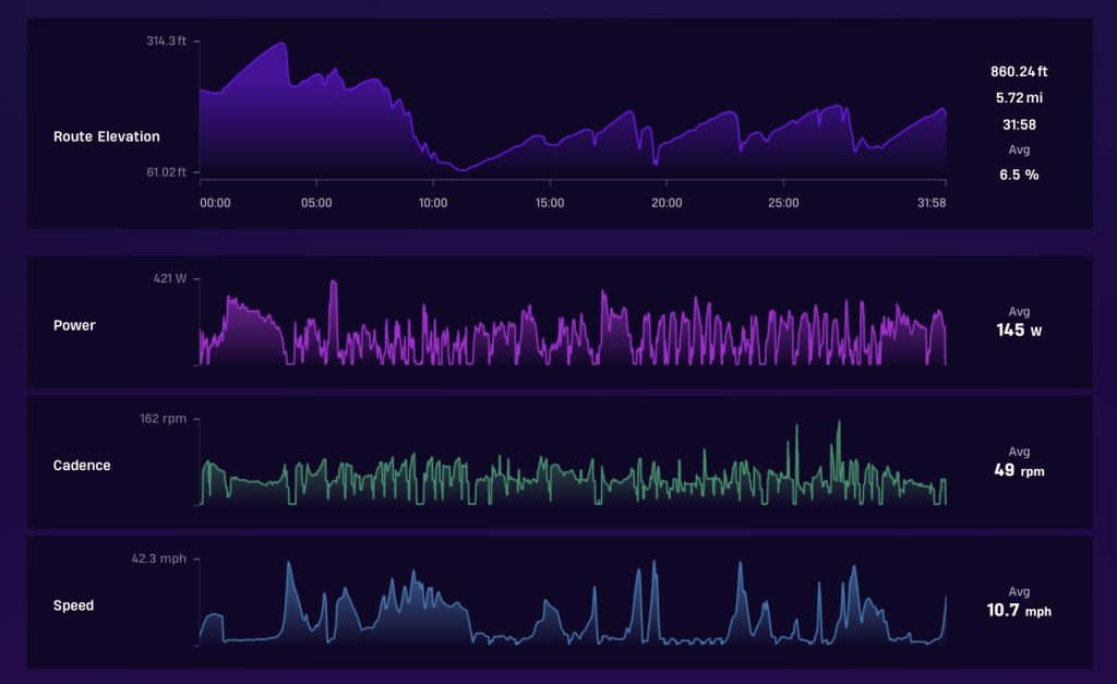 | Sessions | Miles cycled | Feet Climbed | Minutes on bike |